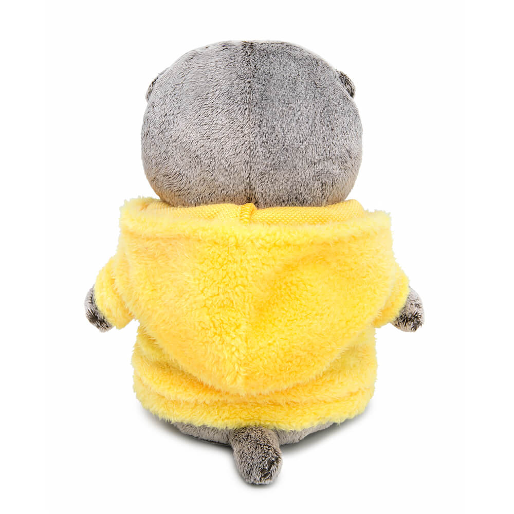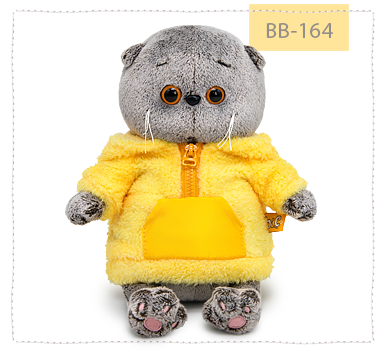 Малыш Басик в стильном анораке из короткого и чрезвычайно нежного меха цвета одуванчика. Анорак сшит с объёмным капюшоном, большим накладным карманом из ярко-жёлтой болоньевой ткани и с зип-молнией золотисто-охристого цвета спереди.
