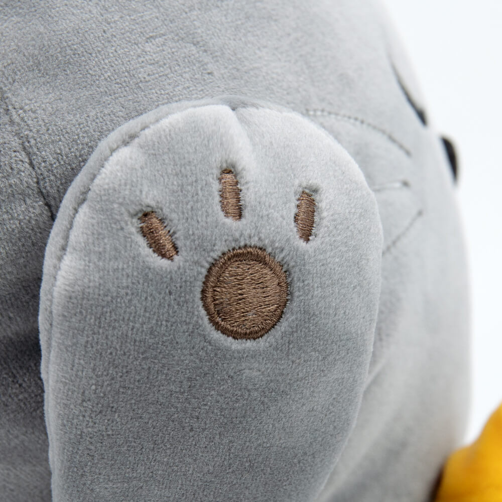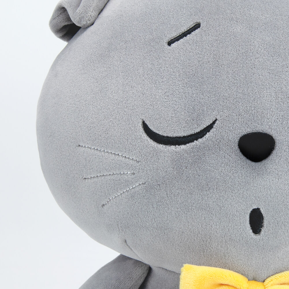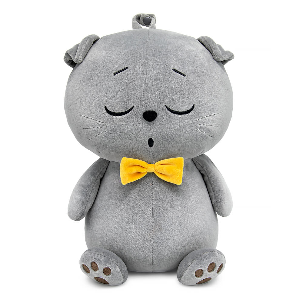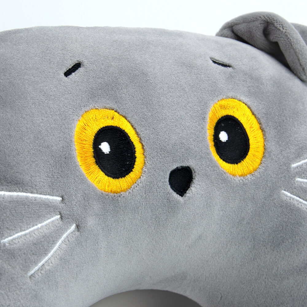 Очень необычная, но очень удобная подушка Басик, сшитая из серого спандекса. Подушка с вышитой мордочкой Басика предназначена для удобства в поездках и полётах на самолёте. Хорошо ложится на шею и застёгивается на кнопку спереди. Такая подушка легко убирается в кота-игрушку. На спине кота-игрушки вшита зип-молния, чтобы удобно было убирать и доставать нашейную подушку. У кота-игрушки спящие глазки, фирменный галстук бабочка и петелька с кнопкой сверху. Петелька служит для того, чтобы удобно было закрепить подушку-игрушку, например, на сумке.