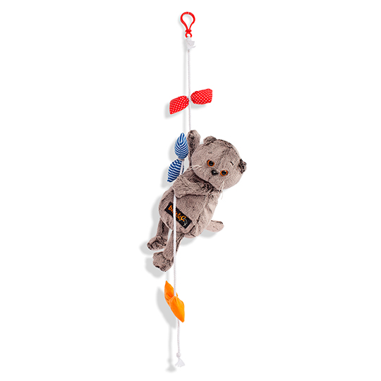 Кот на морском канате с карабином. Канат украшен объёмными бантами из разноцветной ткани.