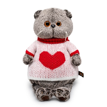 Кот Басик в шикарном свитере с алым сердцем спереди. Свитер связан из мягкого акрила белого и алого цветов.