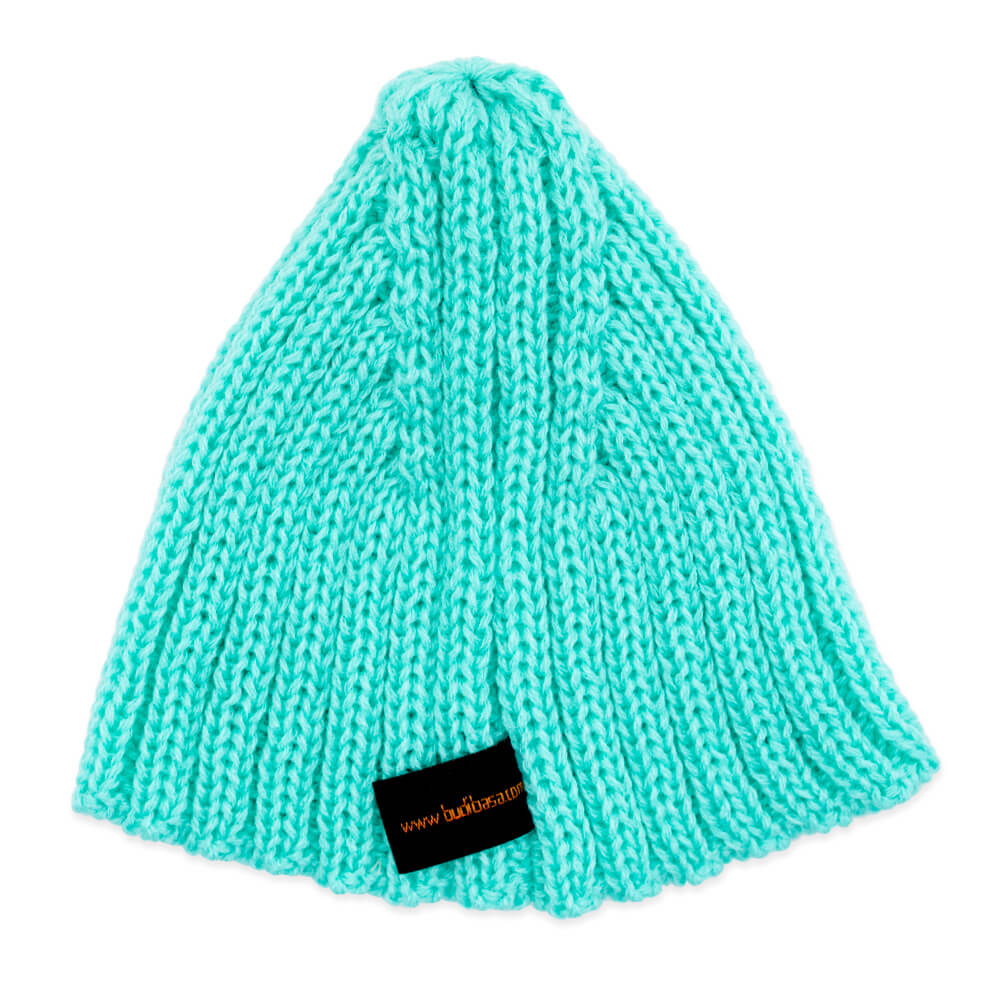 Теплый комплект, состоящий из бирюзовой вязаной шапочки и длинного шарфика из мягкого софта цвета морской воды. Шарфик украшен алым сердечком из фетра.