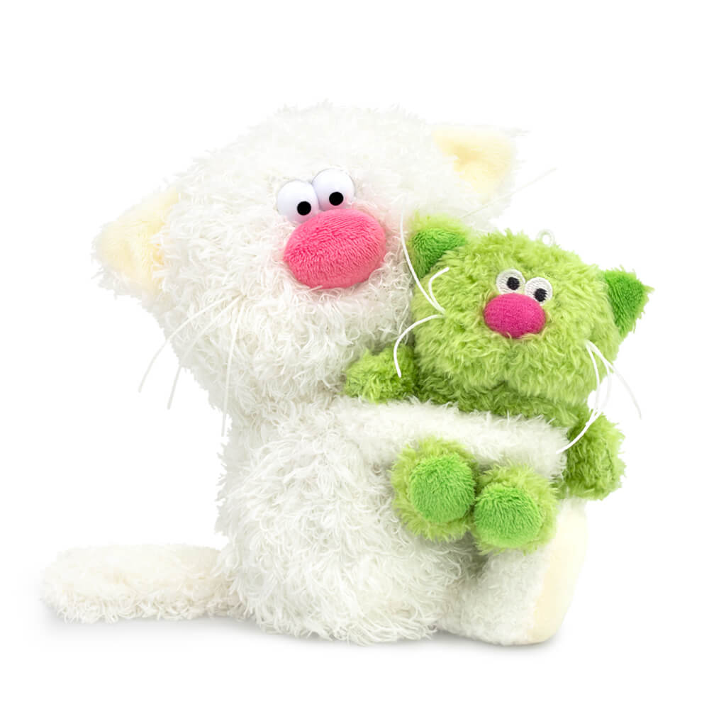 Милый кофейный кот Молоко из тактильно приятного эко меха молочного цвета. У кота есть дружок – сиропчик-котёнок Фисташка. Ведь так вкуснее! Котик Молоко трогательно держит в лапках малыша Фисташку, сшитого из эко меха цвета фисташки.