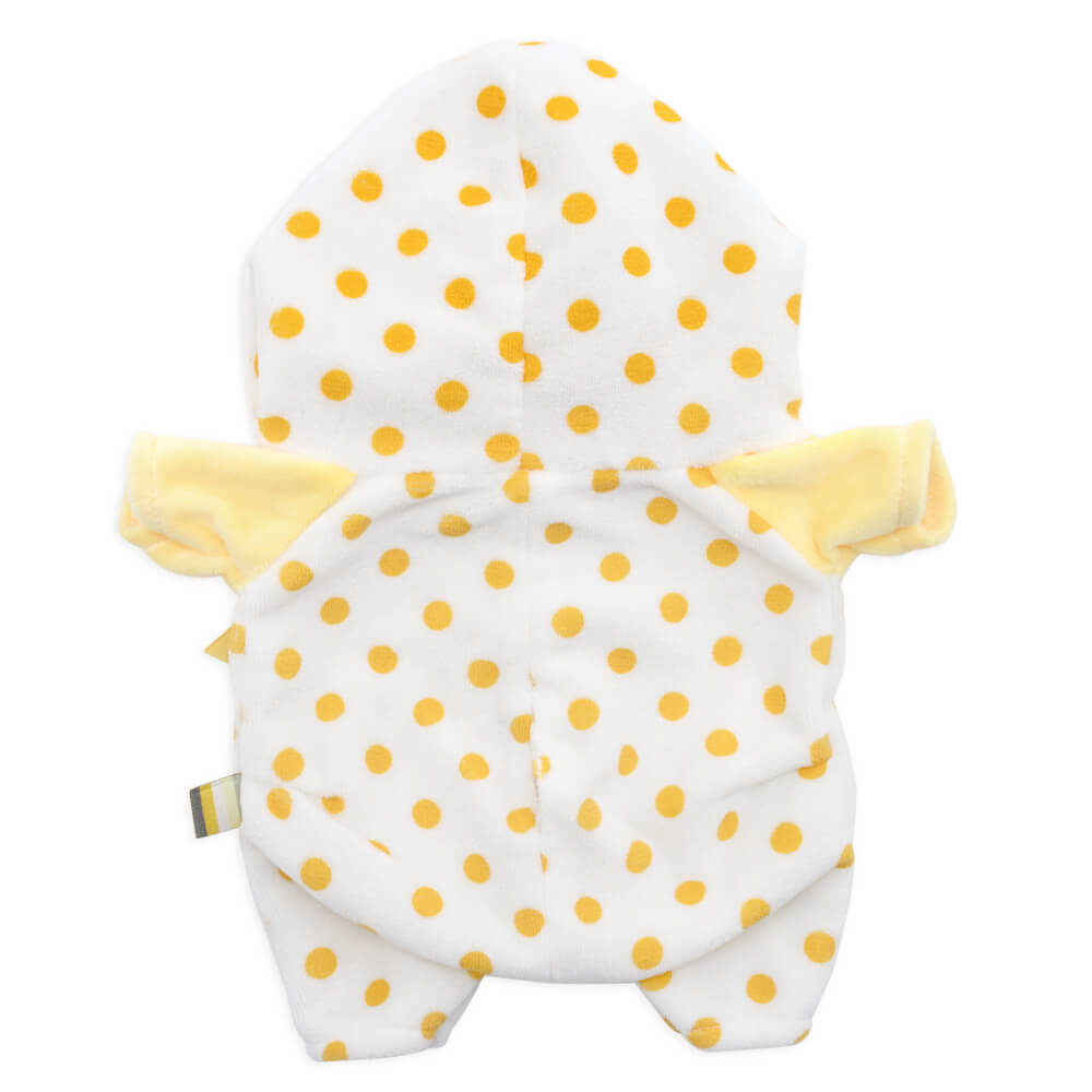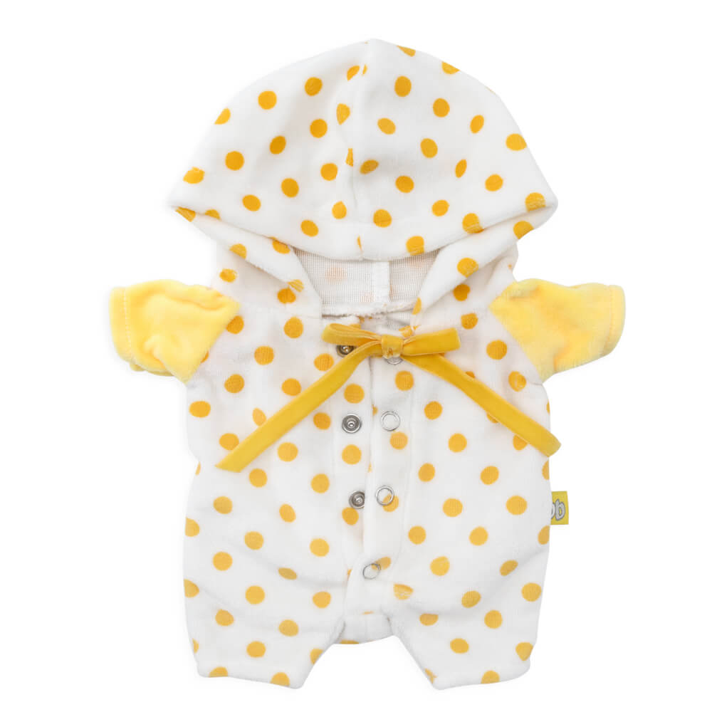 Очень уютный костюмчик из мягкого софта для котёнка Басика. Белый комбинезончик в желтый горошек с рукавами нежного желтого цвета и бантиком спереди.