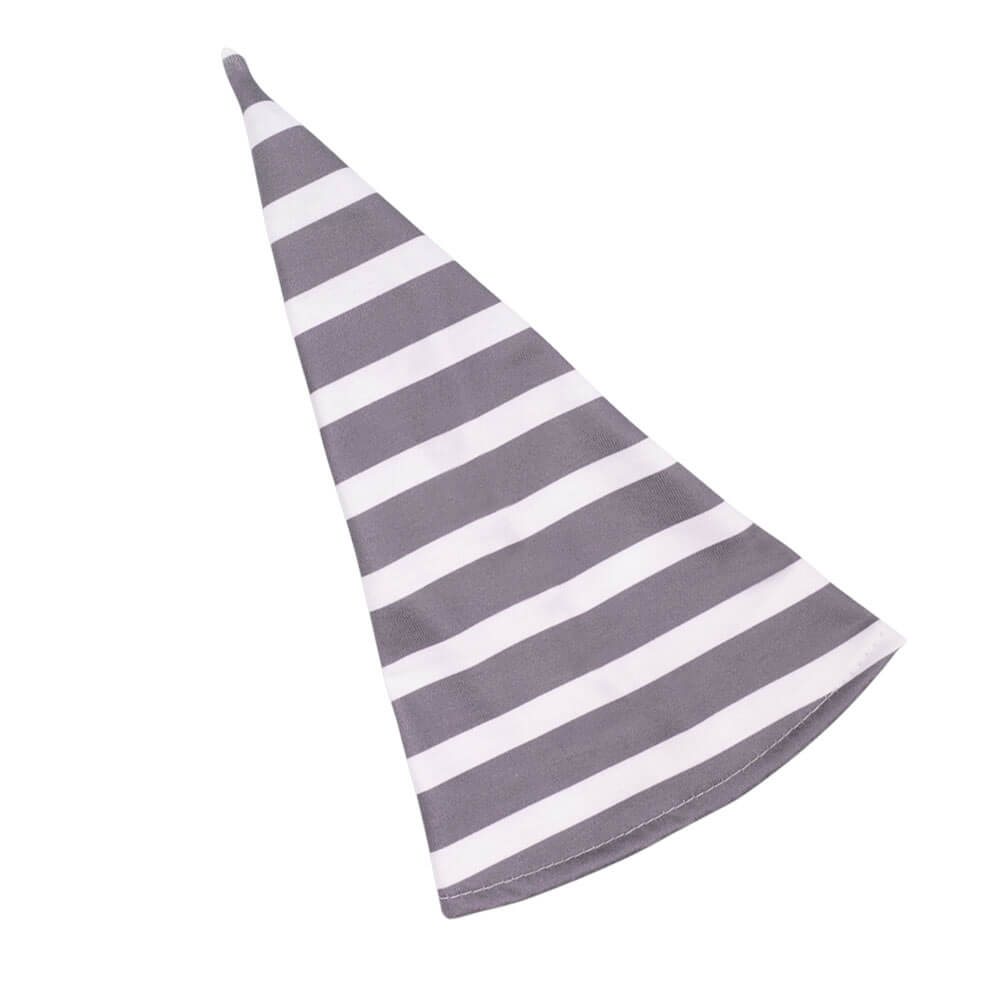 Модная пижама в серую полоску с яркими желтыми пуговичками. В комплекте идет удобный спальный полосатый колпак
