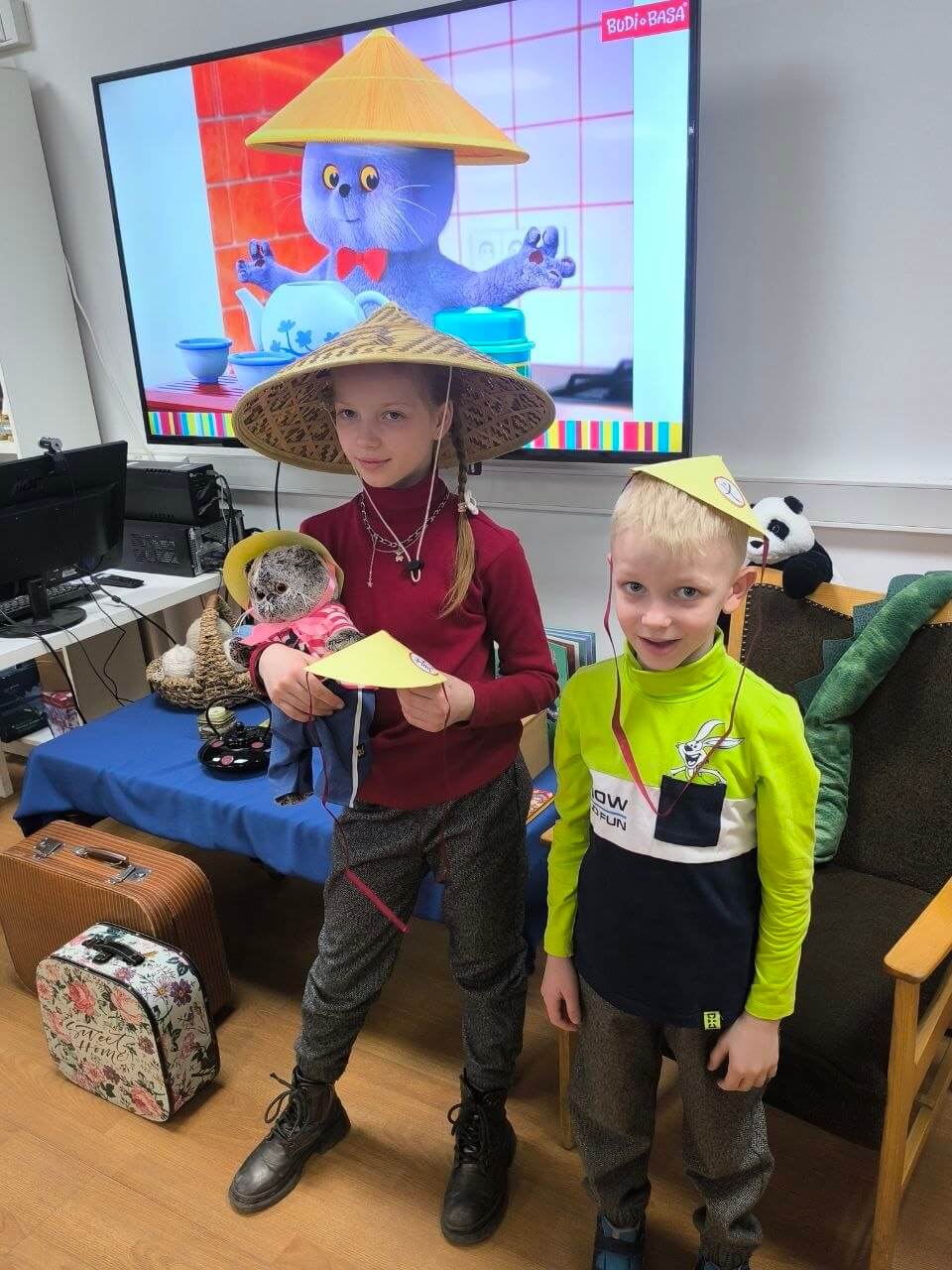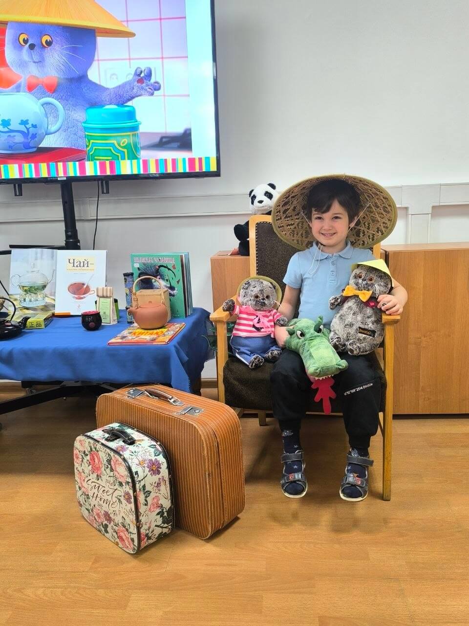 Путешествие в Китай Ребята узнали о Китае и культуре чаепития, обсудили фрагмент мультфильма, смастерили шляпу как у Басика и побывали на настоящей чайной церемонии: наблюдали, как распускается связанный чай с хризантемой, и попробовали его на вкус. |