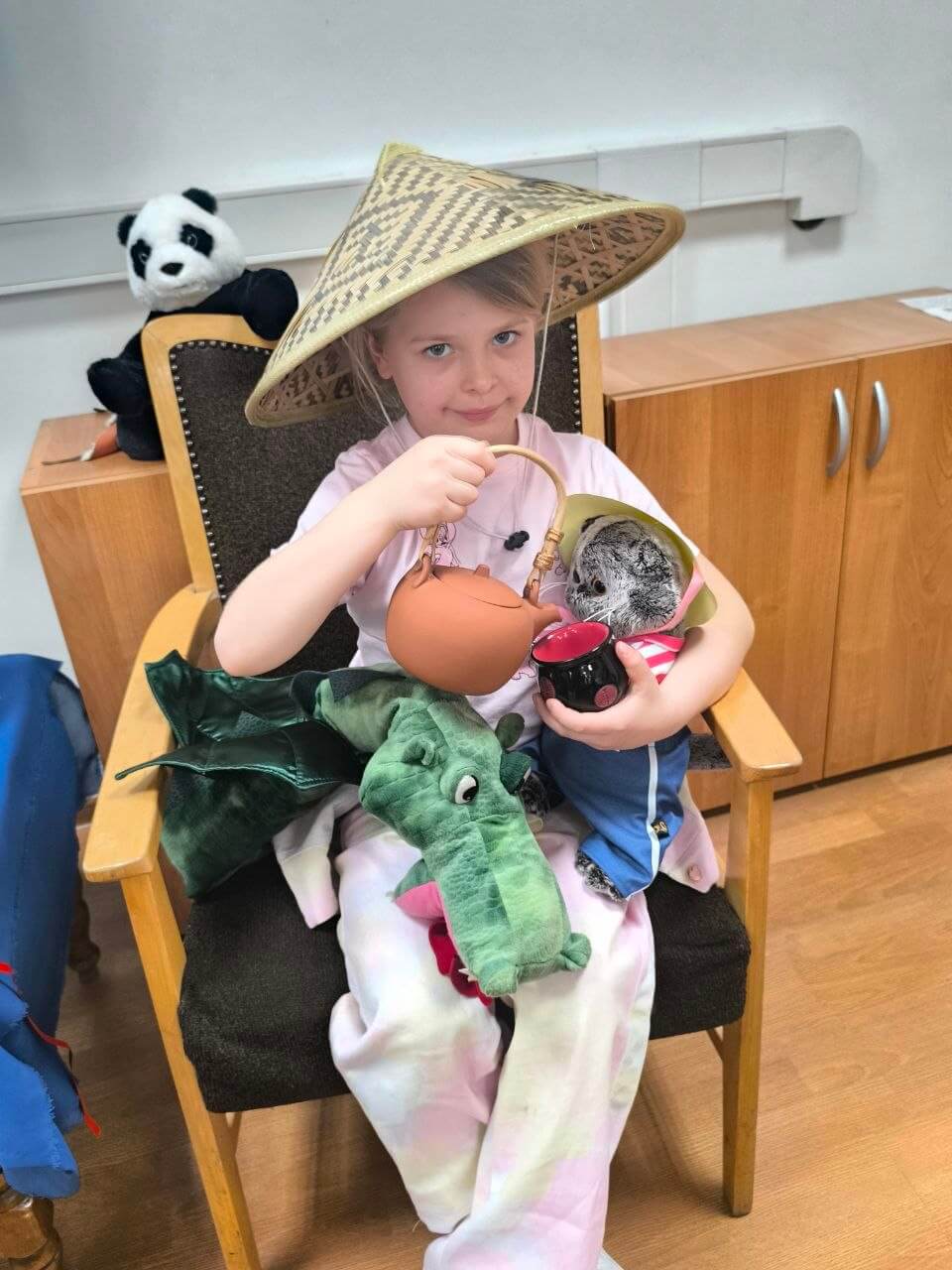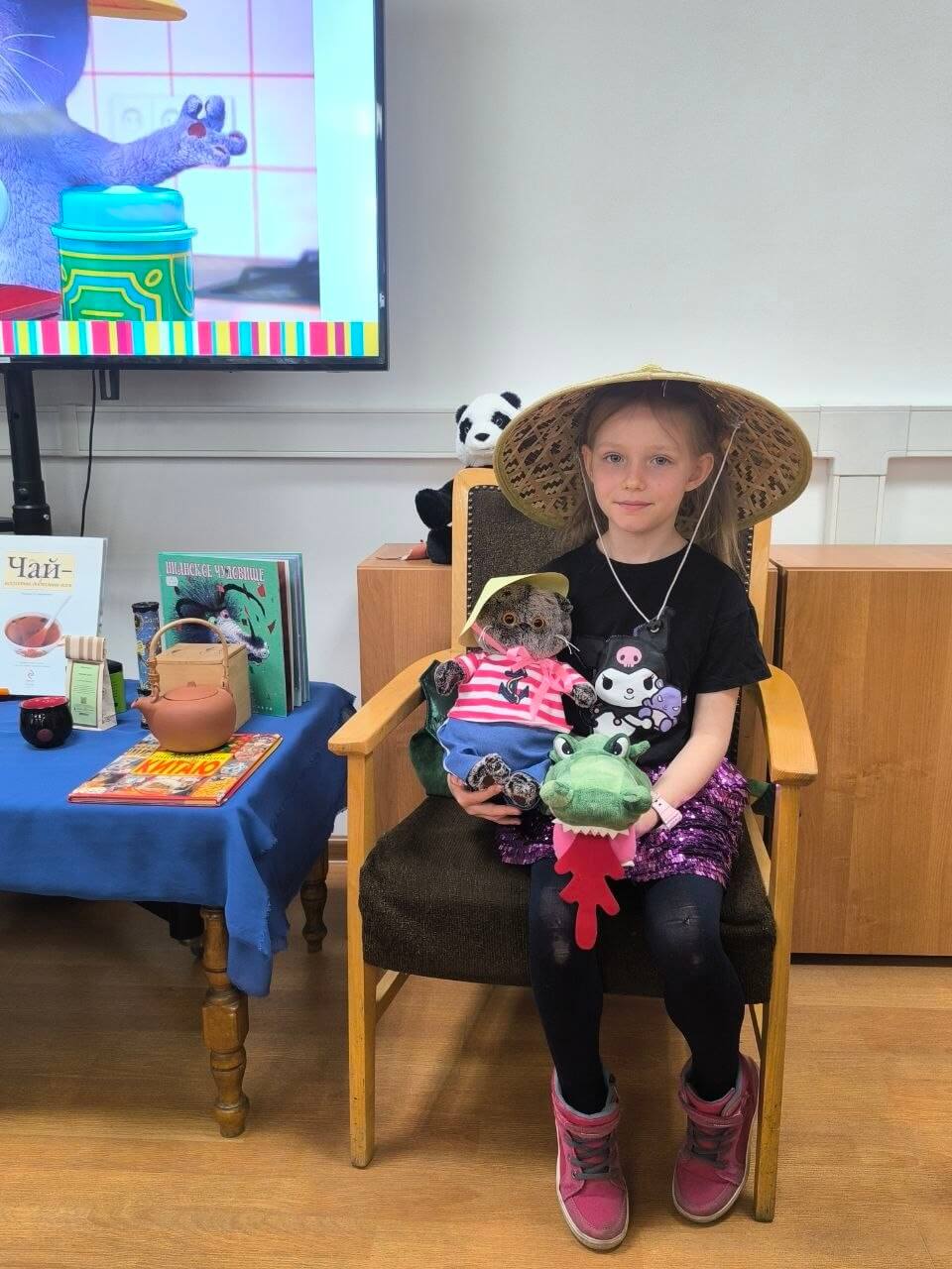 Ребята узнали о Китае и культуре чаепития, обсудили фрагмент мультфильма, смастерили шляпу как у Басика и побывали на настоящей чайной церемонии: наблюдали, как распускается связанный чай с хризантемой, и попробовали его на вкус.