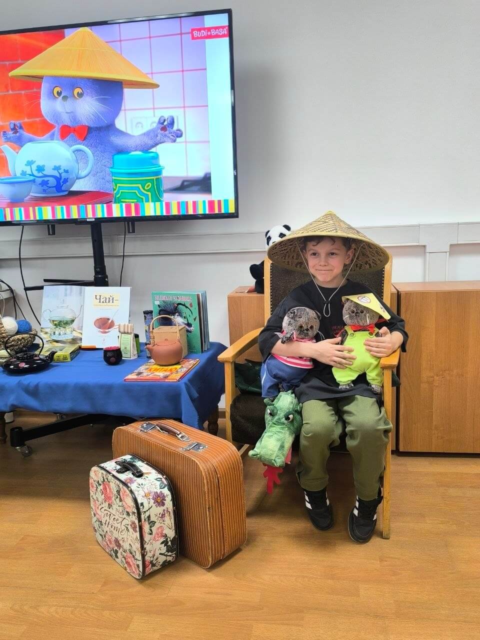 В Российской государственной детской библиотеке прошло занятие из цикла "Круиз без виз". На этот раз наш любимый кот отвёз ребят прямиком в Китай, на родину чая.