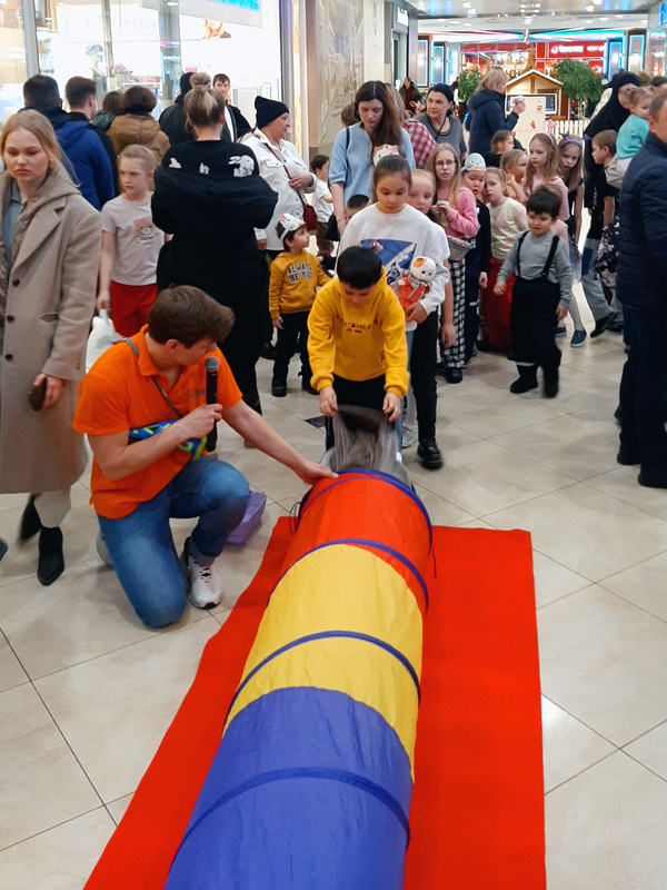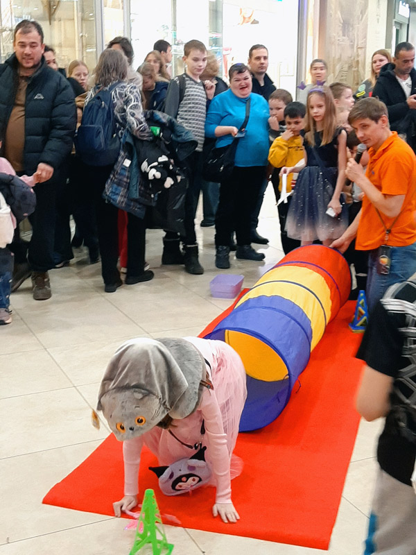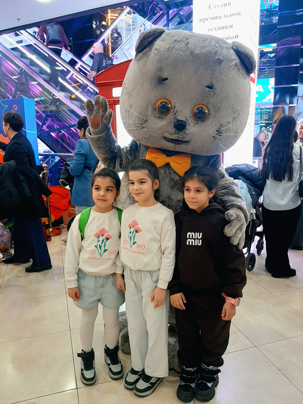 Настоящий джентльмен и умница Кот Басик поздравил всех девочек с чудесным весенним праздником. Гости приняли участие в играх «Как развлечь питомца», «Полоса препятствий» и «Котизация», проверили знания в кошачьей викторине, а в конце детей порадовали шоу мыльных пузырей. Каждый желающий смог сделать праздничное блеск-тату «Мягкие лапки» и создать нарядную маску Басика или Ли-Ли на мастер-классе.